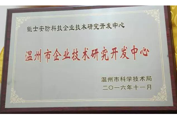 热烈祝贺钜士安防荣获“温州市第一批高新技术企业”称号,同时获批认定为“温州市企业技术研究开发中心”